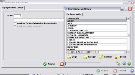 En esta pantalla debe elegir el campo que agregará en el informe e indicará si es totalizable.