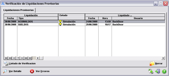 8) Verificar Liquidación: Una vez liquidado provisoriamente puede procederse a verificar lo liquidado. <F8> (Liquidaciones-Verificar Liquidación Provisoria)